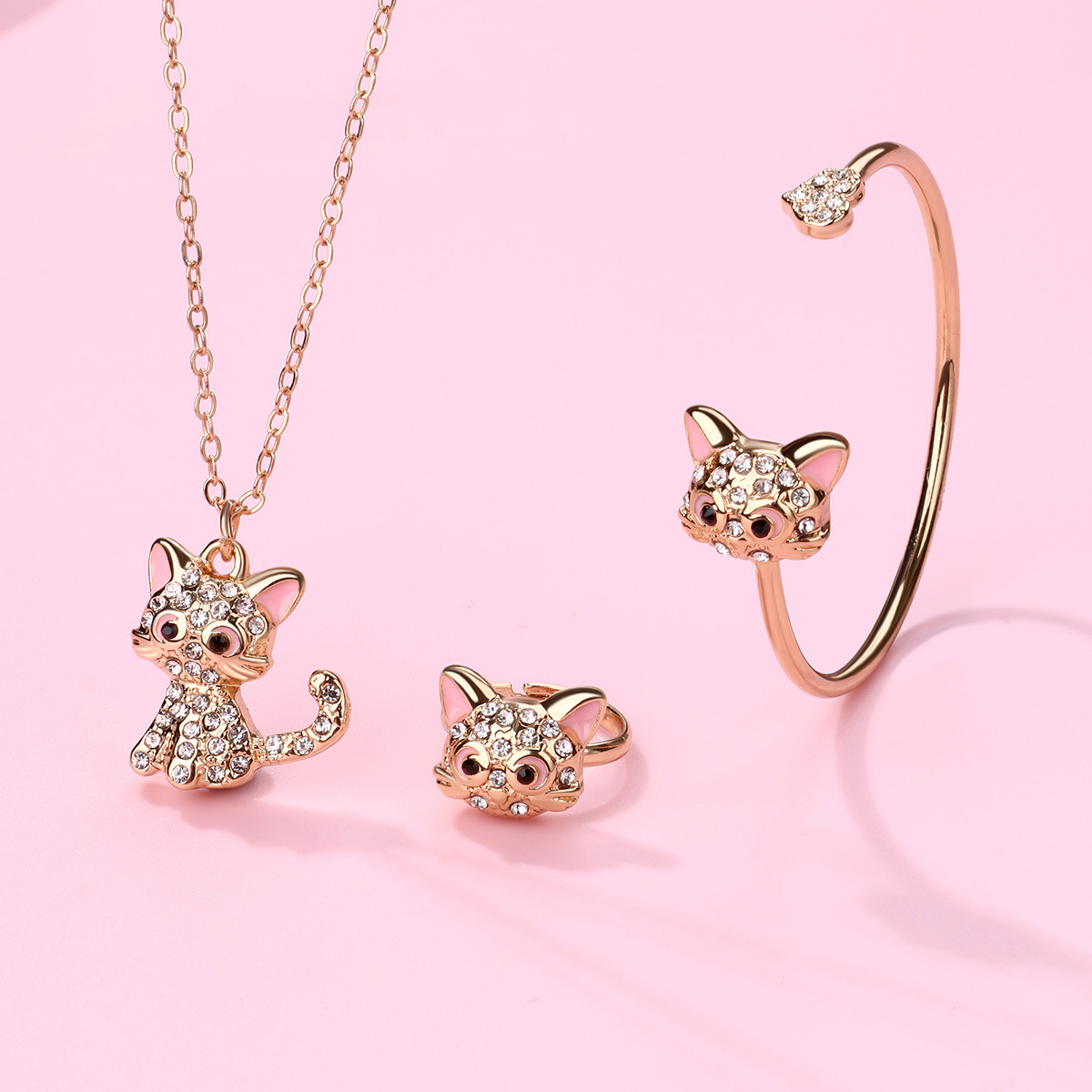 Cross-border hot sale children's jewelry set cartoon fox bracelet necklace ring set alloy diamond jewelry