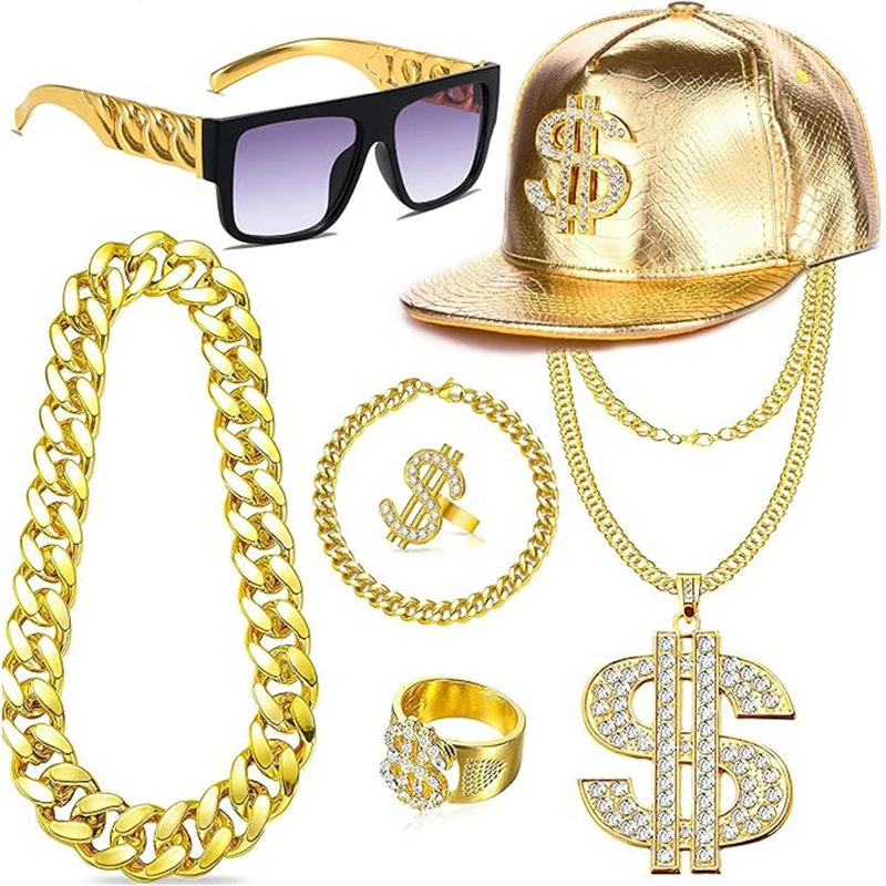 Cross-Border Trendy Hip-Hop Style Punk Elvis Sunglasses 18K Gold-Plated Dollar Necklace Fisherman Hat Accessories Dress-Up Set