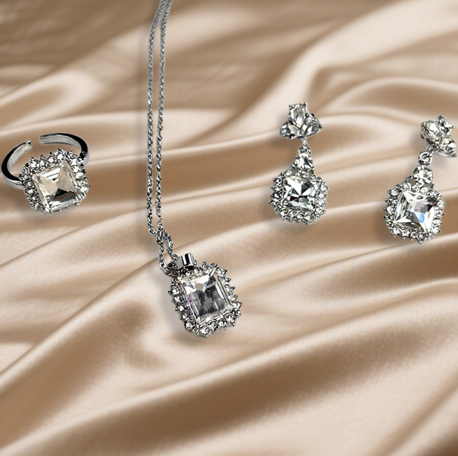 Cross-Border Live Broadcast New Princess Diamond Set Exquisite Versatile Fashion Micro-Paved Zircon Earrings Pendant Necklace Wholesale