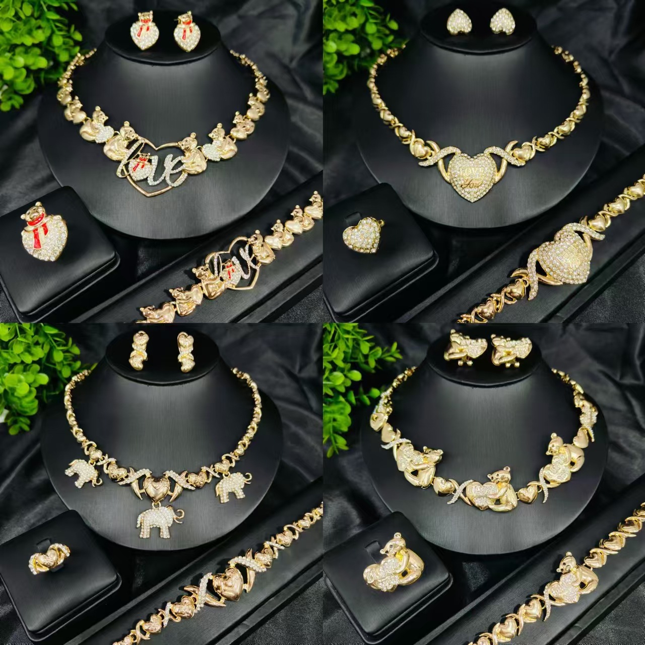 European and American classic XO jewelry suit zinc alloy necklace earrings bracelet ring jewelry four-piece wholesale