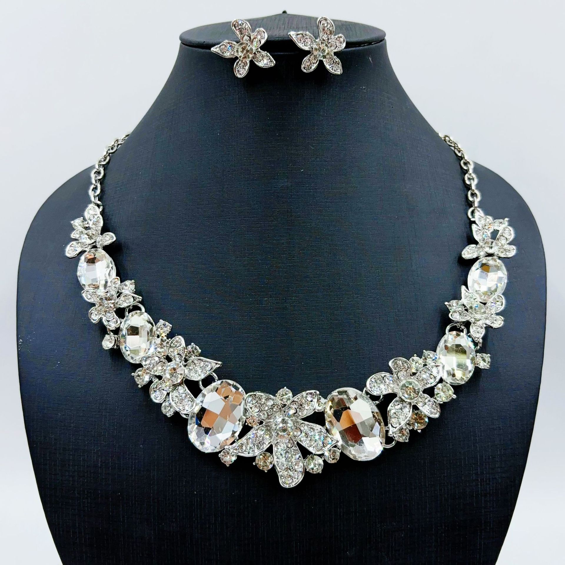 European and American New Cross-border Foreign Trade Jewelry Set Chain Two-piece Crystal Glass Alloy Dress Accessories Women's Necklace