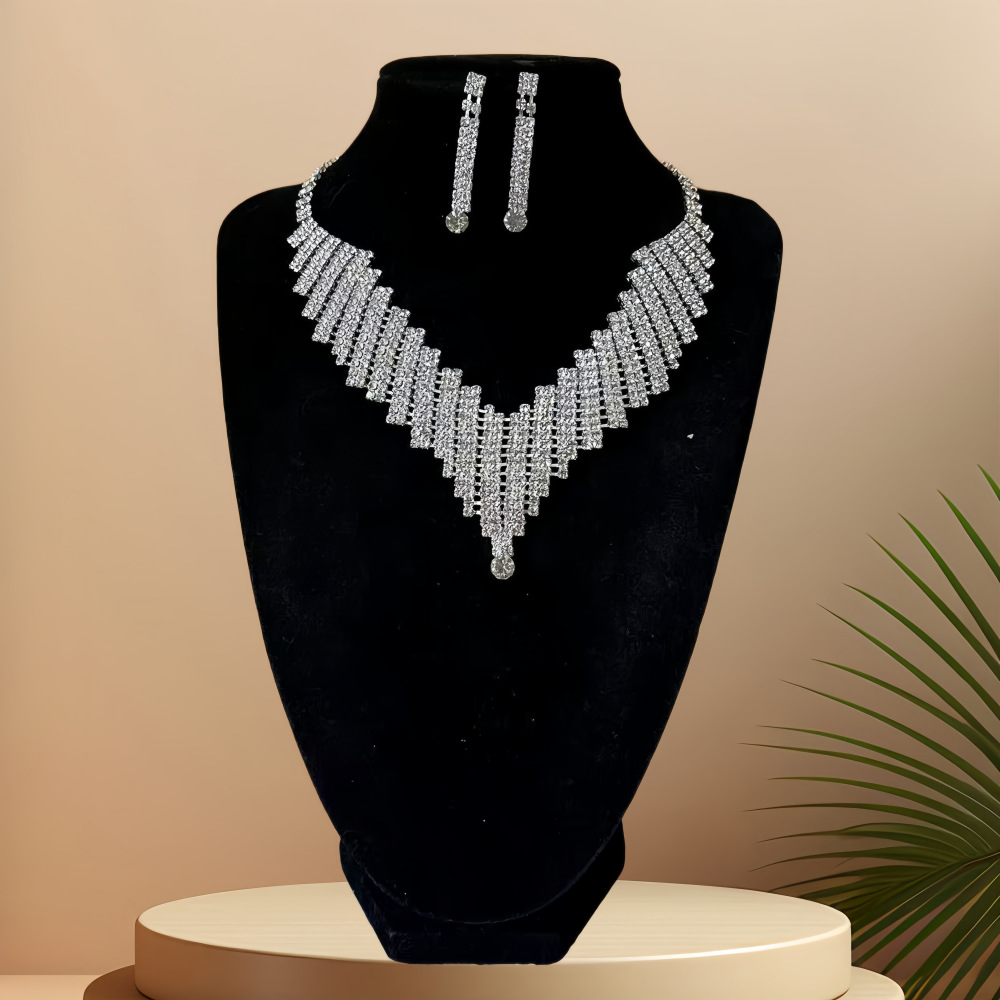European and American Exaggerated Diamond-Encrusted High-End Personalized Luxury Heavy-Duty Elegant and Luxurious Bridal Dinner Earrings and Necklace Set