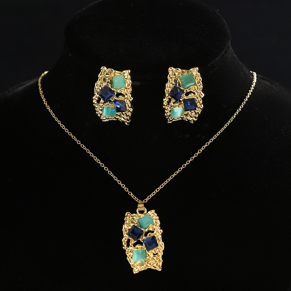 European and American Cross-border Earrings suit Color Square Light Luxury Women's High-end Necklace Women's Fashion Joker Necklace Wholesale