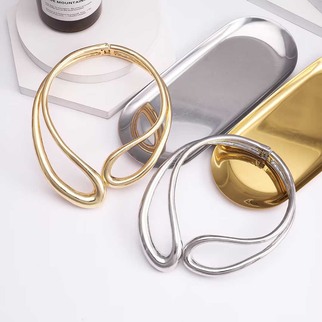 Cross-border new European and American exaggerated asymmetric open alloy twisted necklace cold style creative geometric bracelet suit