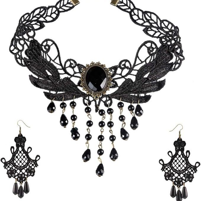 Halloween Dark Gothic Style Black Tassel Necklace Women's Choker Necklace Neck High-End Jewelry Set