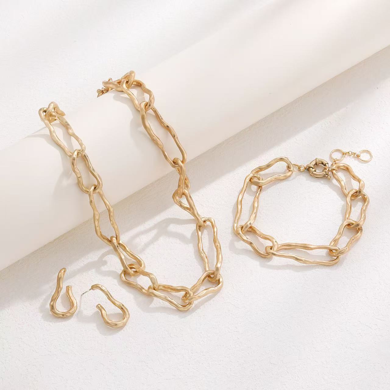 Cross-Border European and American Fashion Handmade Chain Set Matte Gold Retro Simple Twist Irregular Texture Daily Versatile Necklace