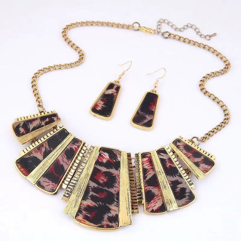 European and American Foreign trade AliExpress fashion retro leopard necklace alloy exaggerated earrings necklace bracelet suit accessories for women