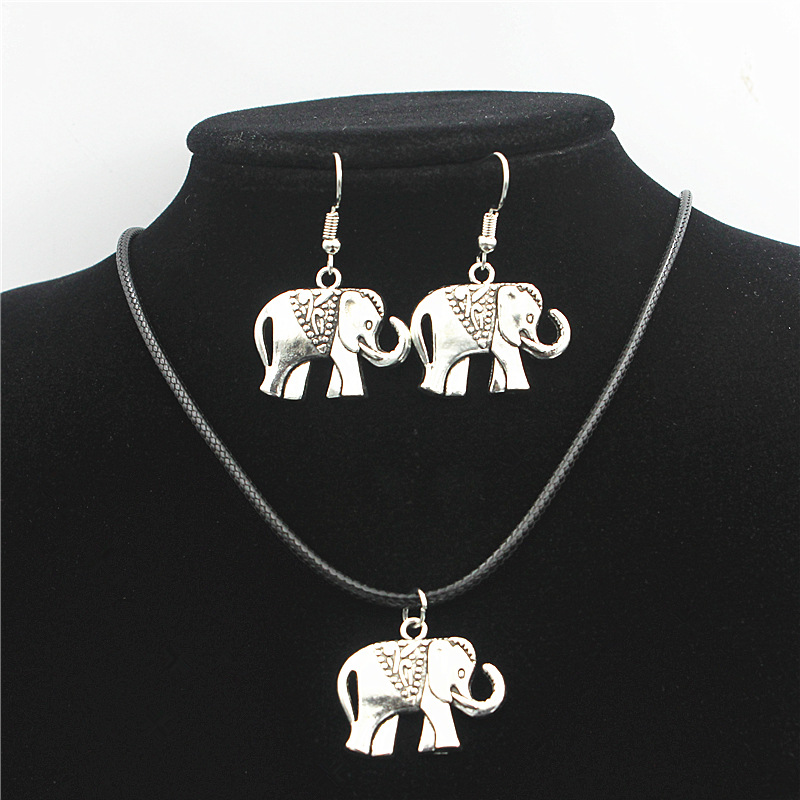 European and American style alloy elephant necklace earrings two-piece zinc alloy necklace jewelry set Wholesale