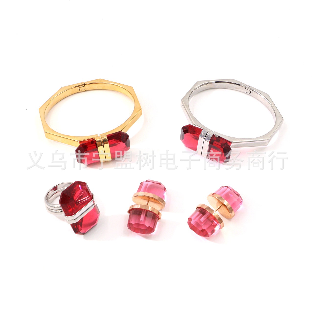 [New Product] Lucent Colorful Crystal Faceted Octagonal Drop Shape Diamond Bracelet Ring Earring Set
