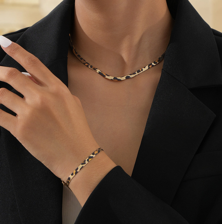 European and American Cross-Border Trendy Leopard Print Simple Exaggerated Retro Luxury Fashion Temperament Necklace Bracelet Set Personality Versatile