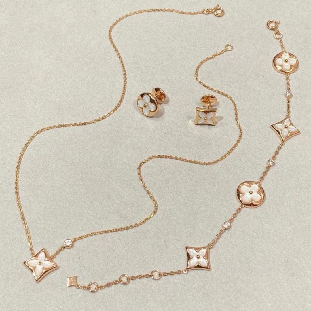 Pink and White Shell Necklace V Gold Cnc Luji Brand Four-Flower Five-Flower Four-Leaf Clover Bracelet Earring Set Ruyi Jewelry Chinese Style
