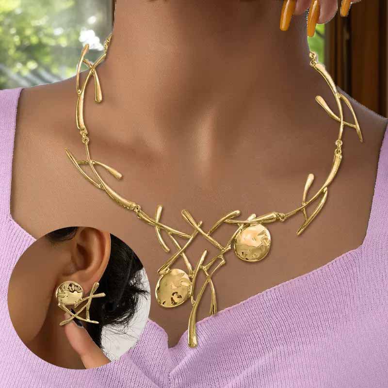 Cross-Border European and American Women's Alloy Irregular Geometric Branch Vintage Personality Hip-Hop Earrings Necklace Jewelry Set