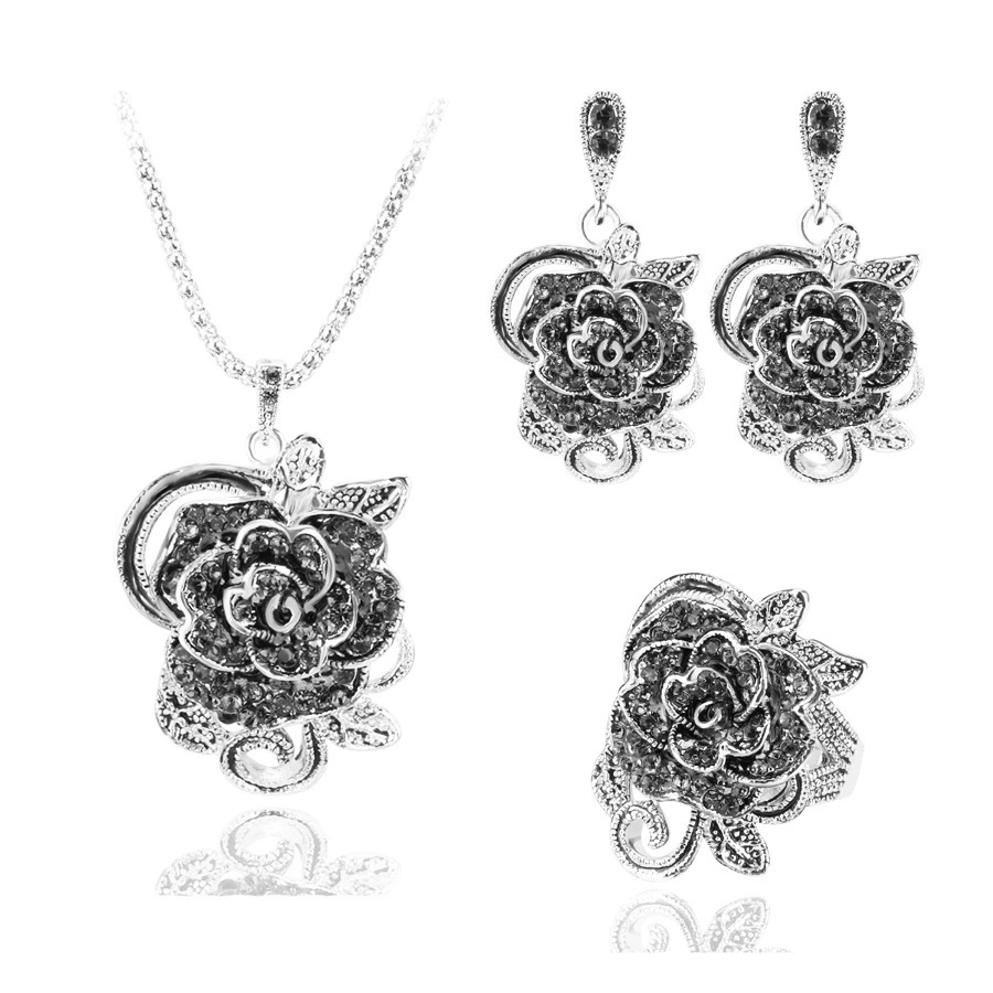 Japanese and Korean simple rose jewelry suit Amazon bridal jewelry three-piece set Yiwu source factory supply