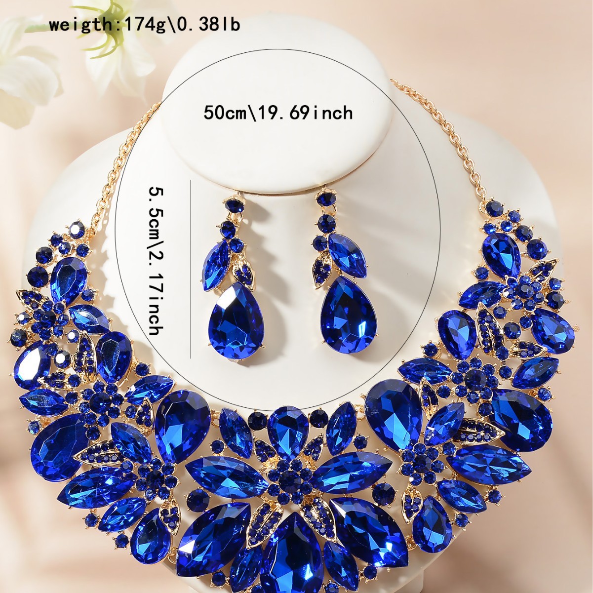 Tl679 Cross-Border E-Commerce European and American Exaggerated Crystal Necklace Earrings Set Bridal Banquet Jewelry Women's Accessories Wholesale