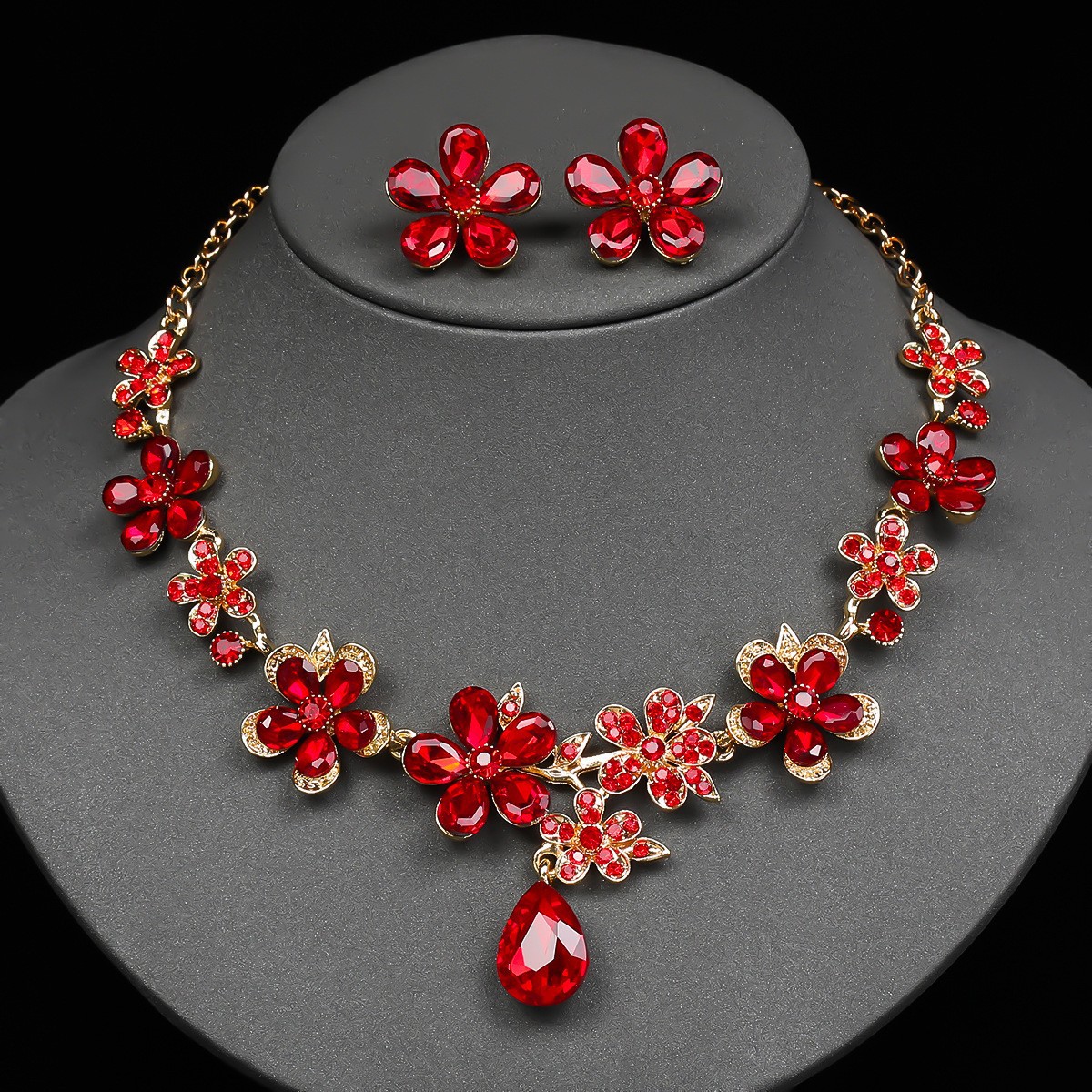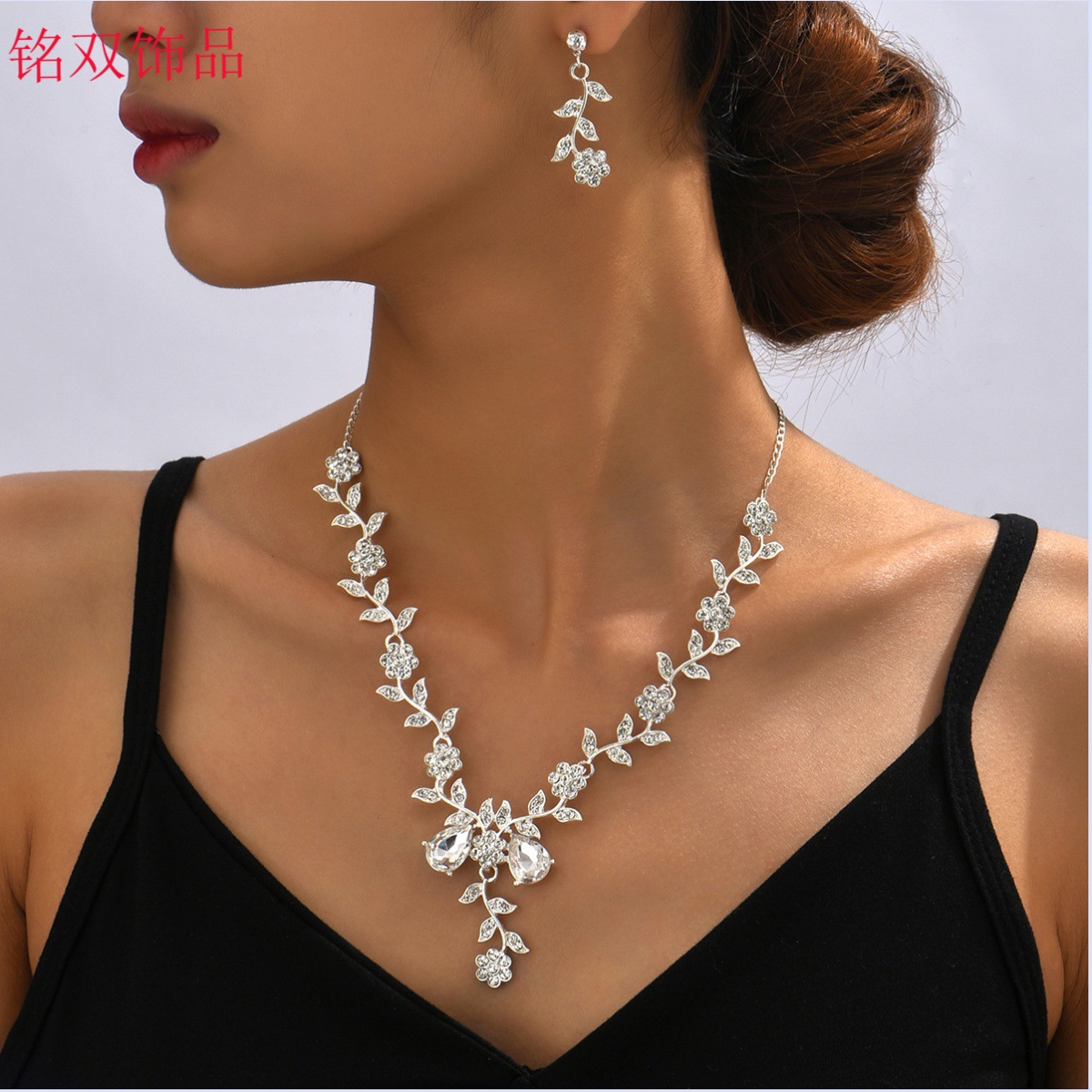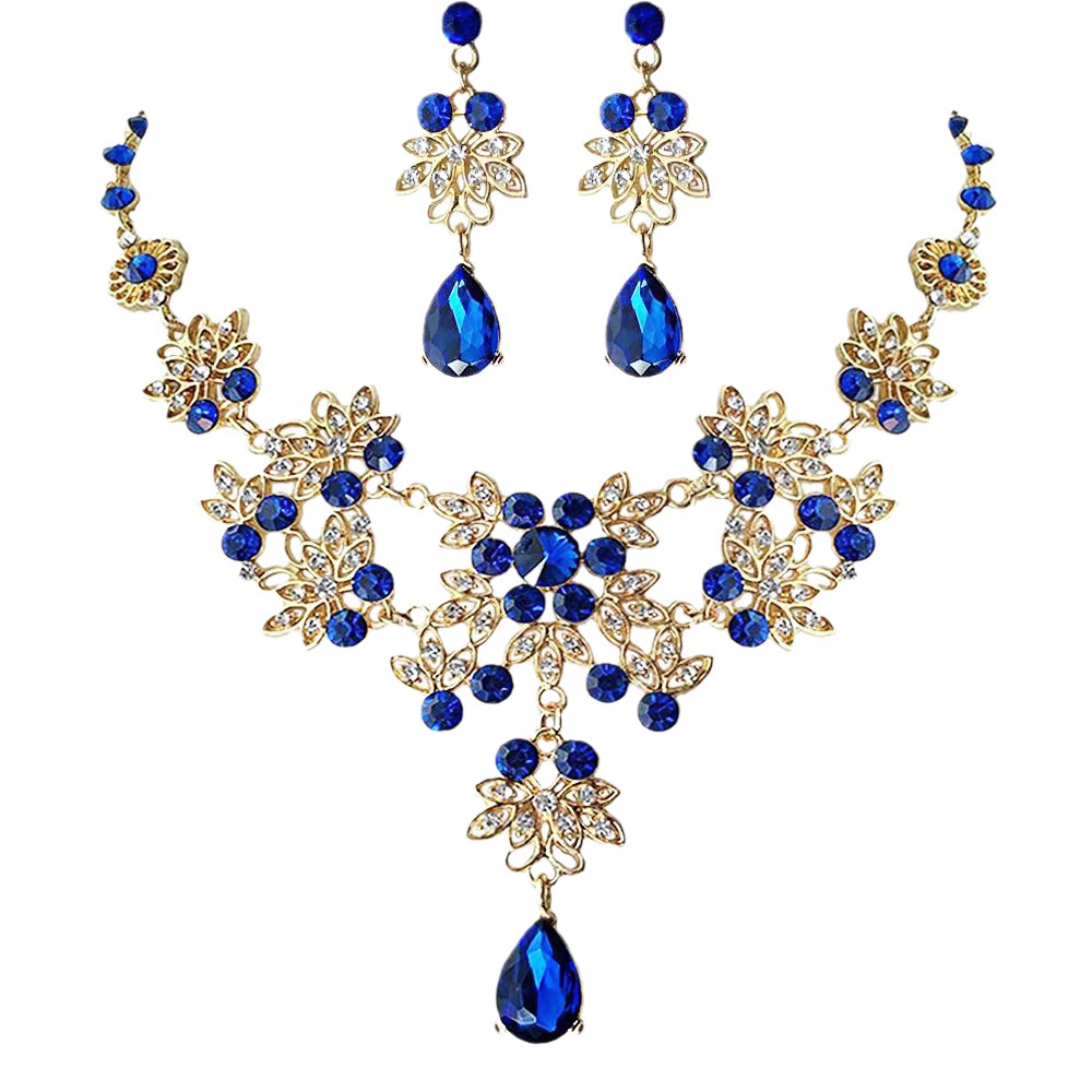 European and American Necklace and Earrings Set for Women Cross-Border Jewelry Crystal Water Alloy Bridal Wedding Jewelry Flower Retro Style