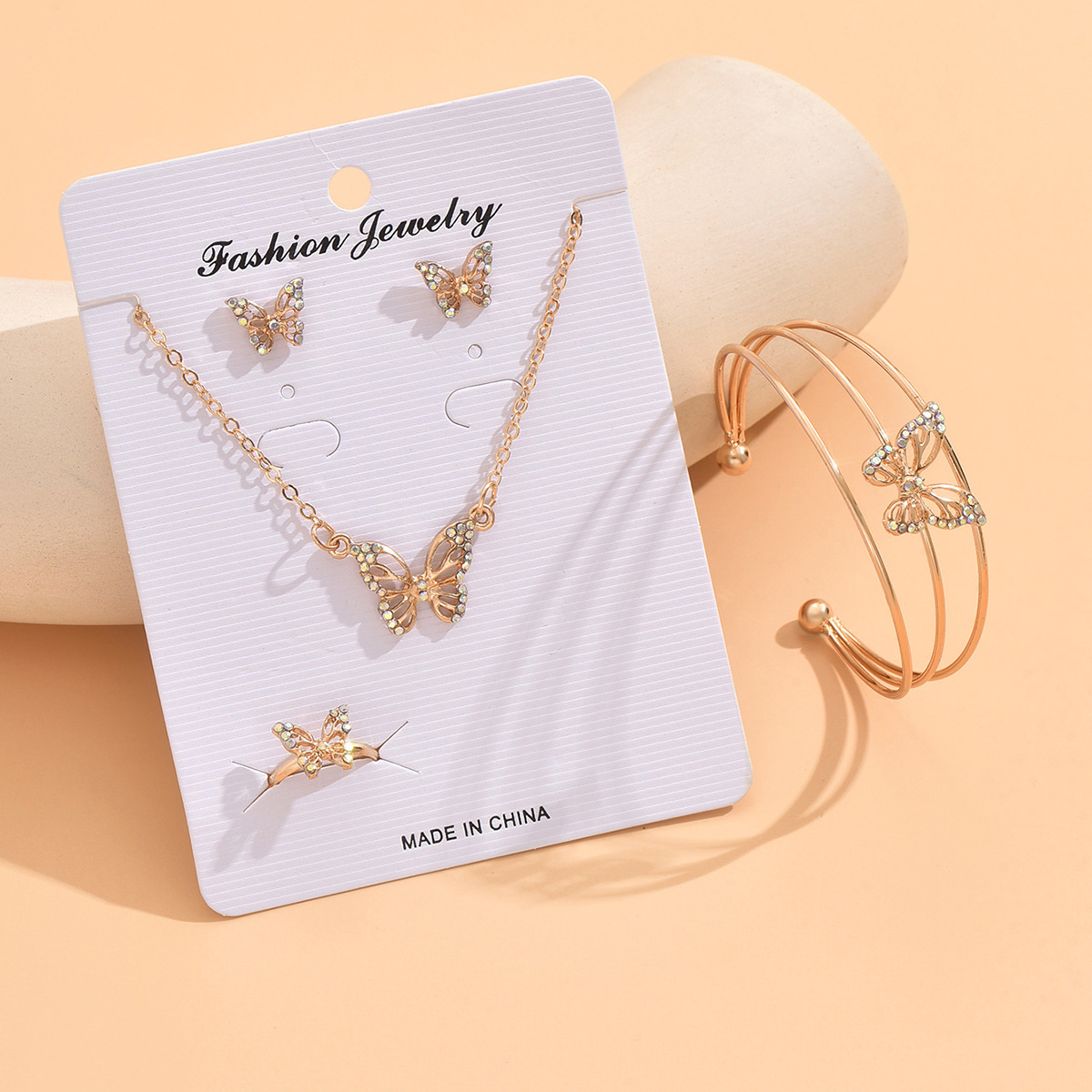 European and American Diamond Butterfly Jewelry Set French Alloy Bracelet Cross-Border Popular Earrings Jewelry Four-Piece Necklace Set