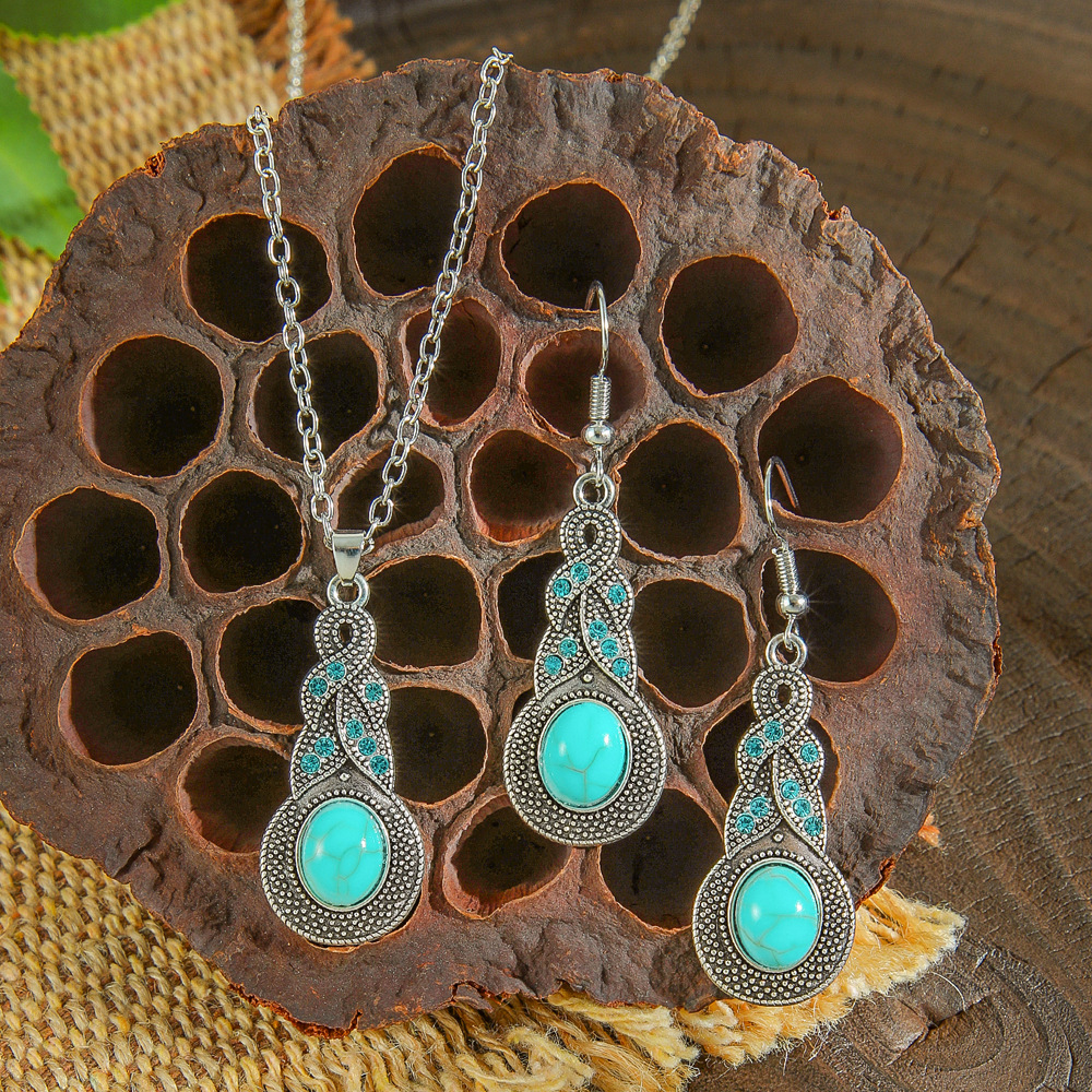 Cross-border Amazon popular ethnic style earrings European and American turquoise retro National style earrings necklace suit jewelry