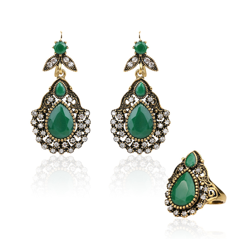 Palace nostalgic retro inlaid white diamond cut gemstone ring earrings European and American temperament ladies jewelry set Wholesale