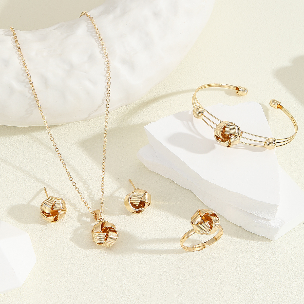 European and American Ins Style Twisted Knot suit Women's Creative Knot Necklace Earrings Ring Bracelet Twist suit Jewelry