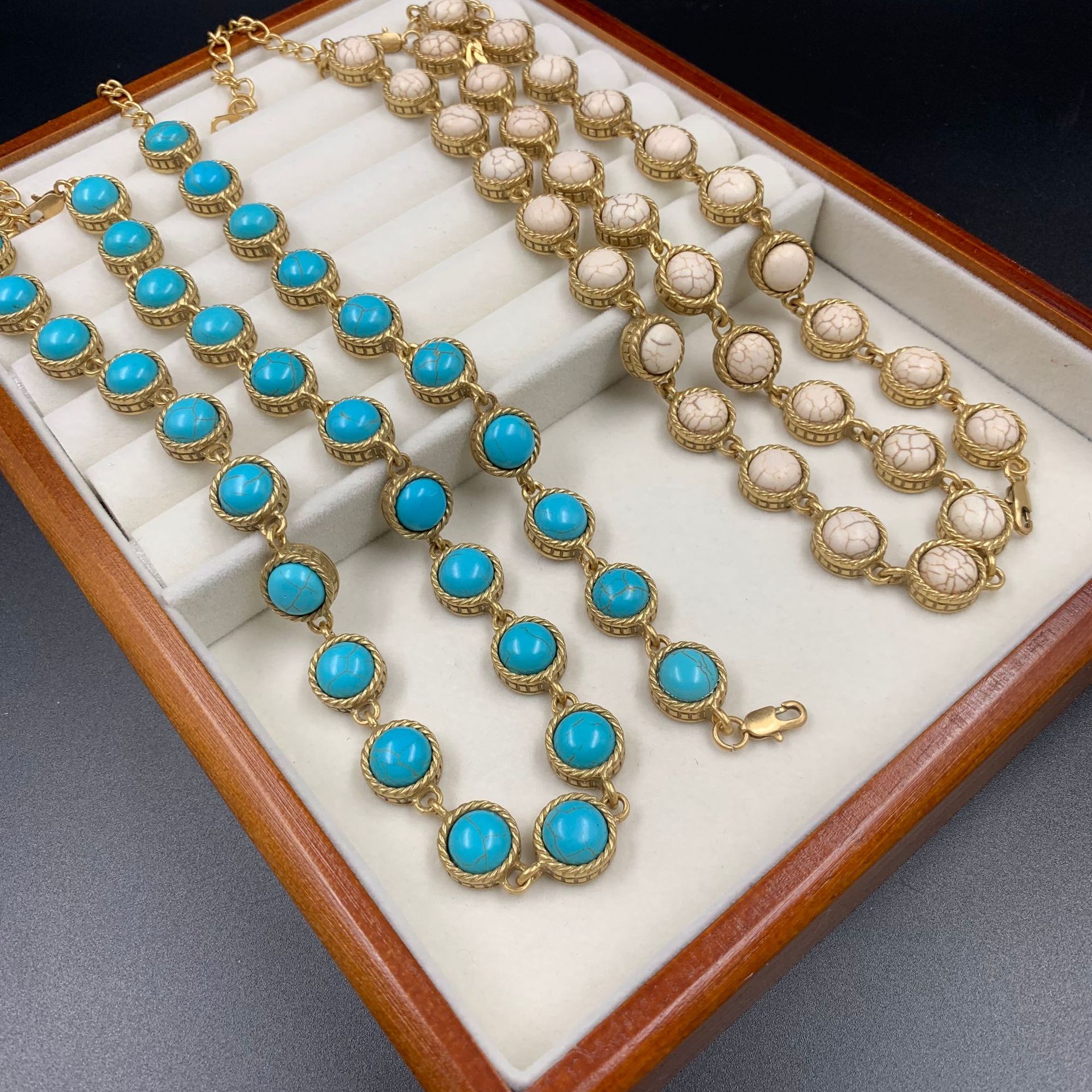 Mid-ancient vintage simple elegant turquoise necklace bracelet fashion temperament bohemian jewelry suit