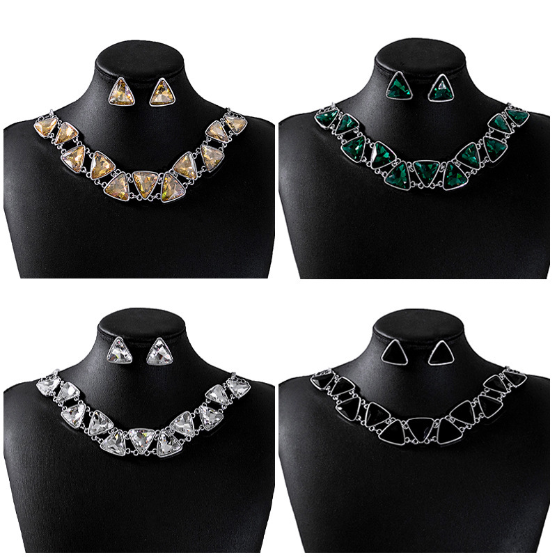 European and American Luxury Jewelry suit Dinner Dress Accessories Earrings Retro Exaggerated Geometric Triangle Necklace