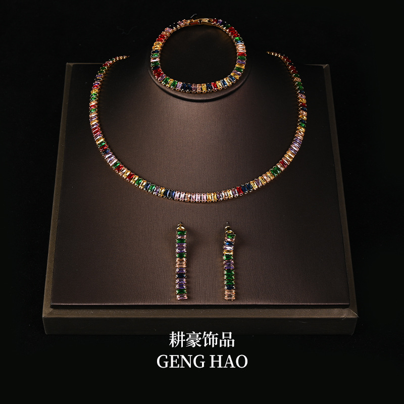 Manufacturer Customized Colorful Alloy Jewelry Set Niche Simple Rainbow Necklace Bracelet Earrings for Women Qingdao Middle-Aged