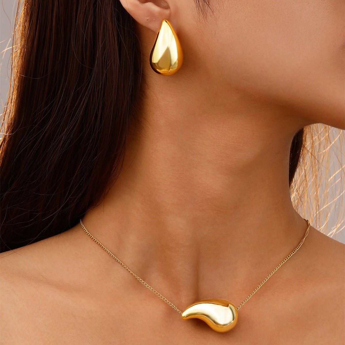 European and American Cross-Border Hot-Selling Women's Fashion Creative Simple Comma Water Drop Pendant Earrings Necklace Jewelry Set Two-Piece Set