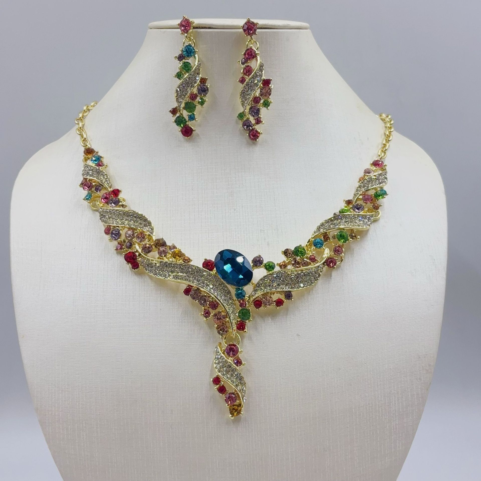 Shijia Cross Border Button Roman Necklace Fashion Crystal Inlaid Bracelet High Diamond Earrings Dress Accessories suit