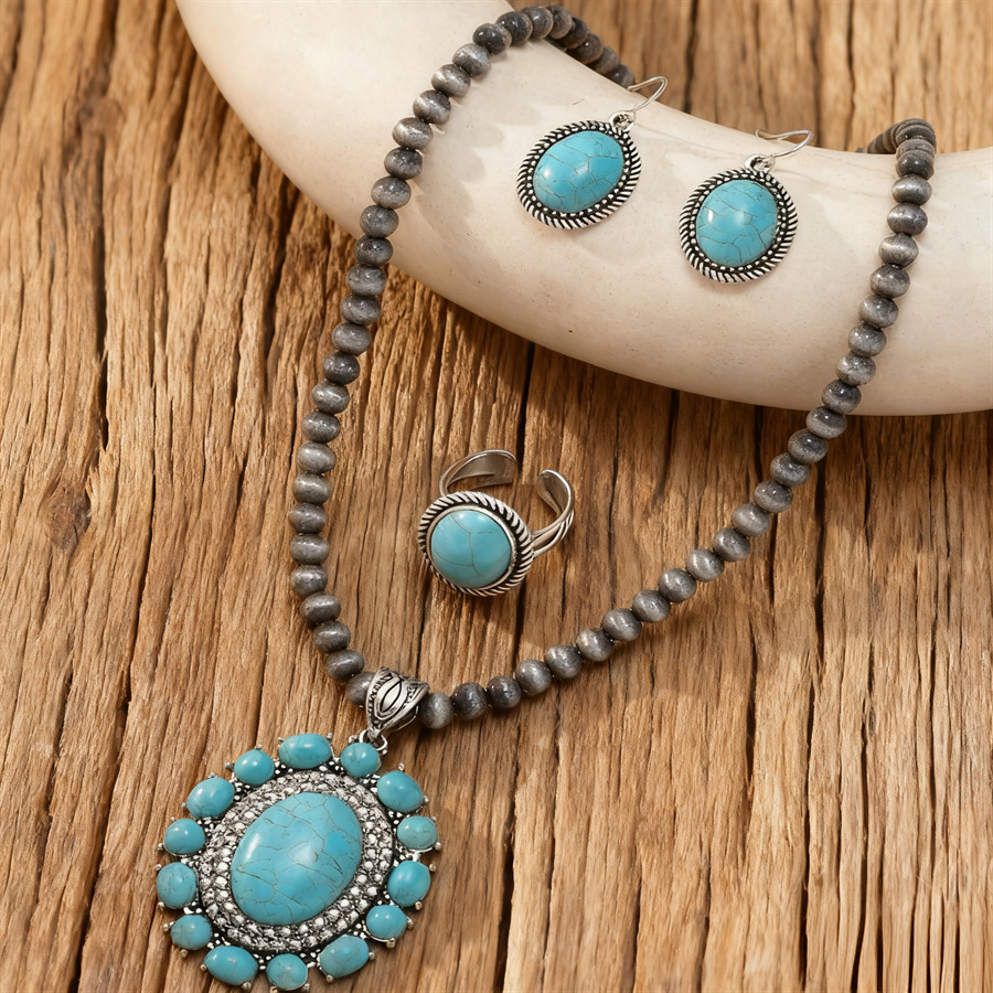 Cross-Border Hot-Selling Necklace, Earrings and Ring Three-Piece Jewelry Set, Retro Ethnic Style Bohemian Jewelry Set