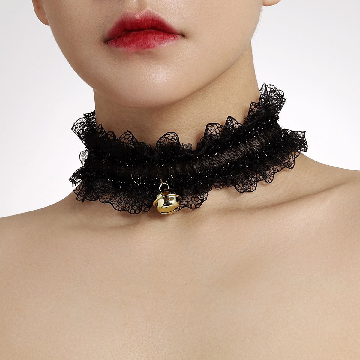 Personalized Design Fabric Bell Necklace Bracelet Combination Lace Ruffled Choker Necklace Bracelet suit
