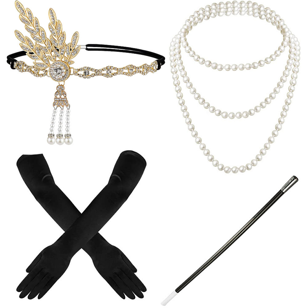 Cross-Border Amazon 1920S Cocktail Party Feather Bright Diamond Headband Bride Stage Performance Cocktail Party Cos Jewelry Set