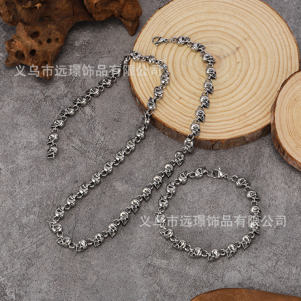 Cross-Border European and American New Style Men's Domineering Personality Skull Versatile Men's Alloy Bracelet Necklace. Set of Jewelry