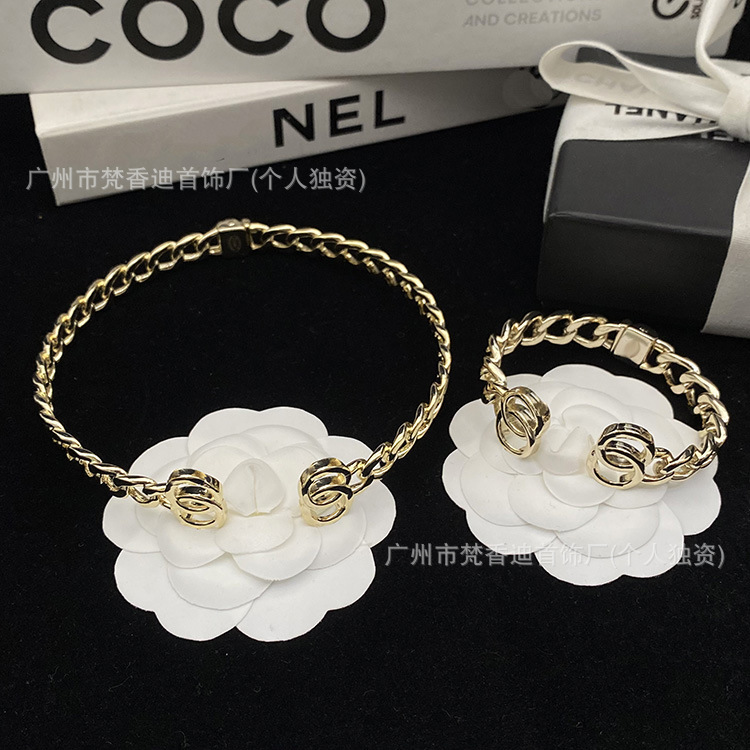 Classic Metal Chain Open Collar Bracelet for Women, High-End Elegant Light Luxury Socialite Style Popular Set