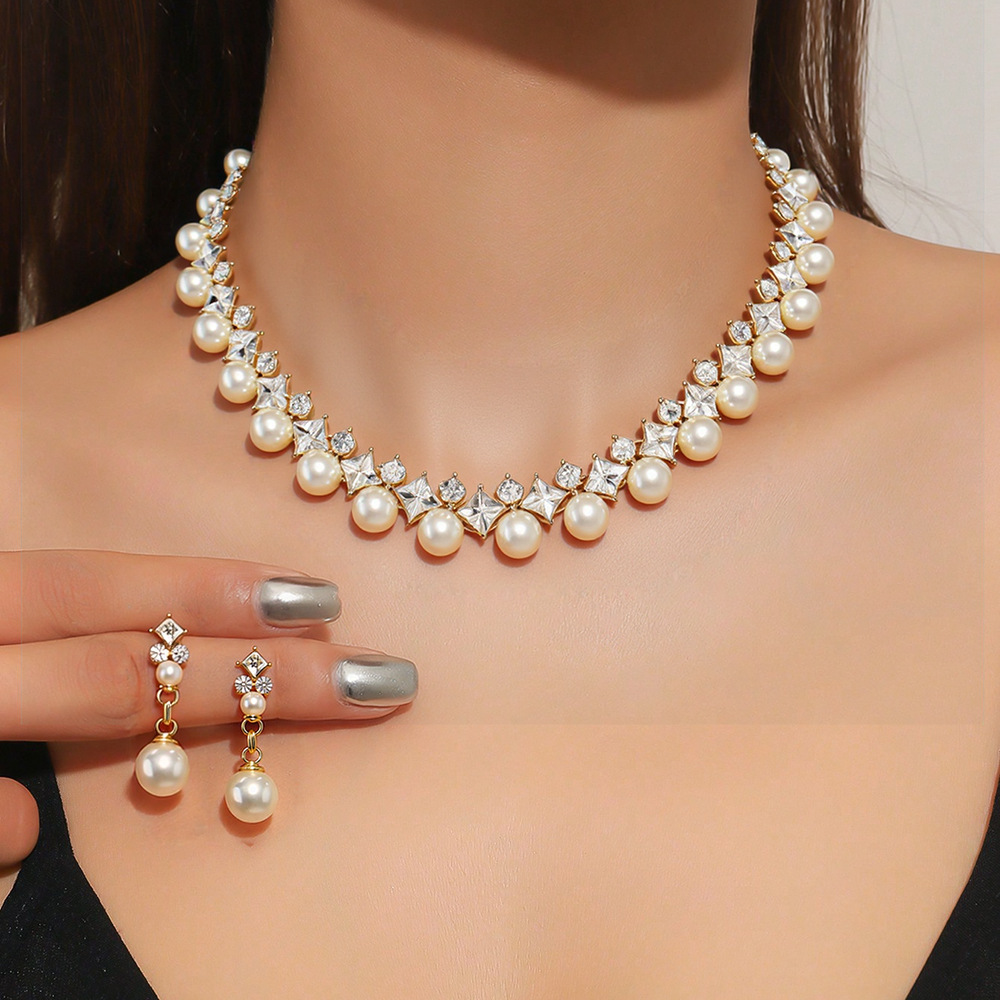 European and American Cross-Border Amazon Bridal Rhinestone Fashion Necklace Earrings Set Ladies Dress Banquet Prom Clothing