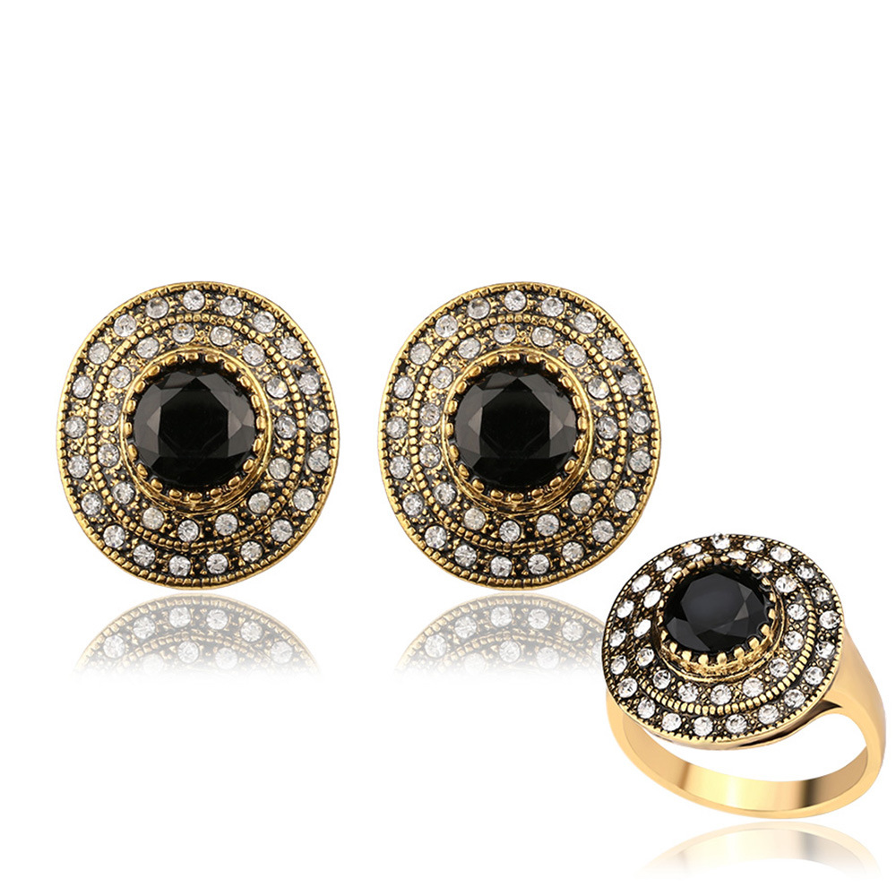 Foreign Trade Court Vintage Noble Luxury Emerald Glass Jewelry Set Alloy Electroplating Dress Jewelry