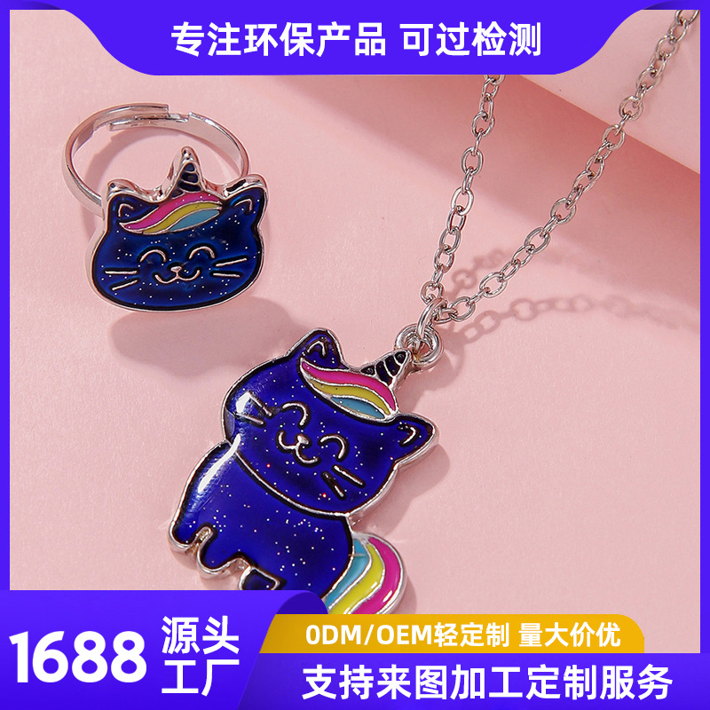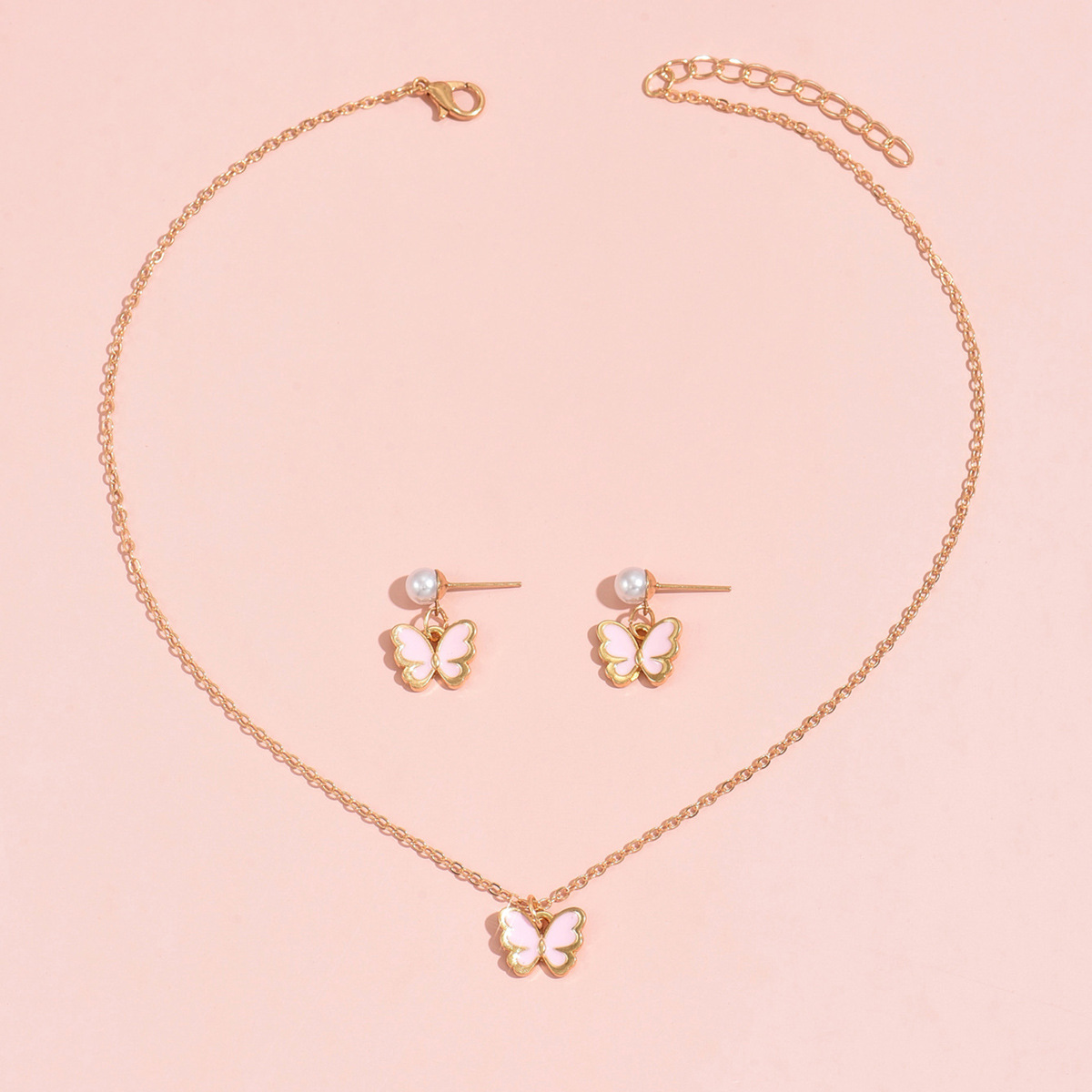 Cross-border European and American Hot Selling Children's Jewelry Cute Oil Dropping Butterfly Necklace Earrings Imitation Pearl Bracelet Ring suit