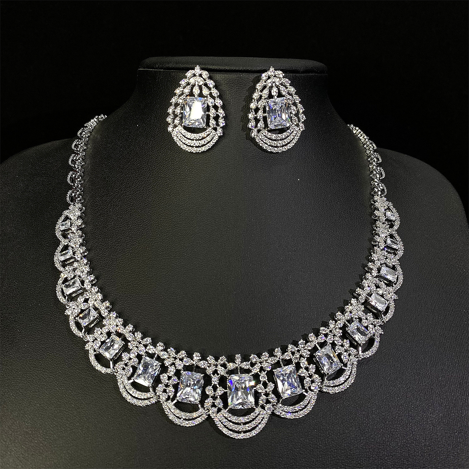 Senior niche zircon necklace earrings European and American temperament suit dress accessories luxury jewelry jewelry suit wholesale