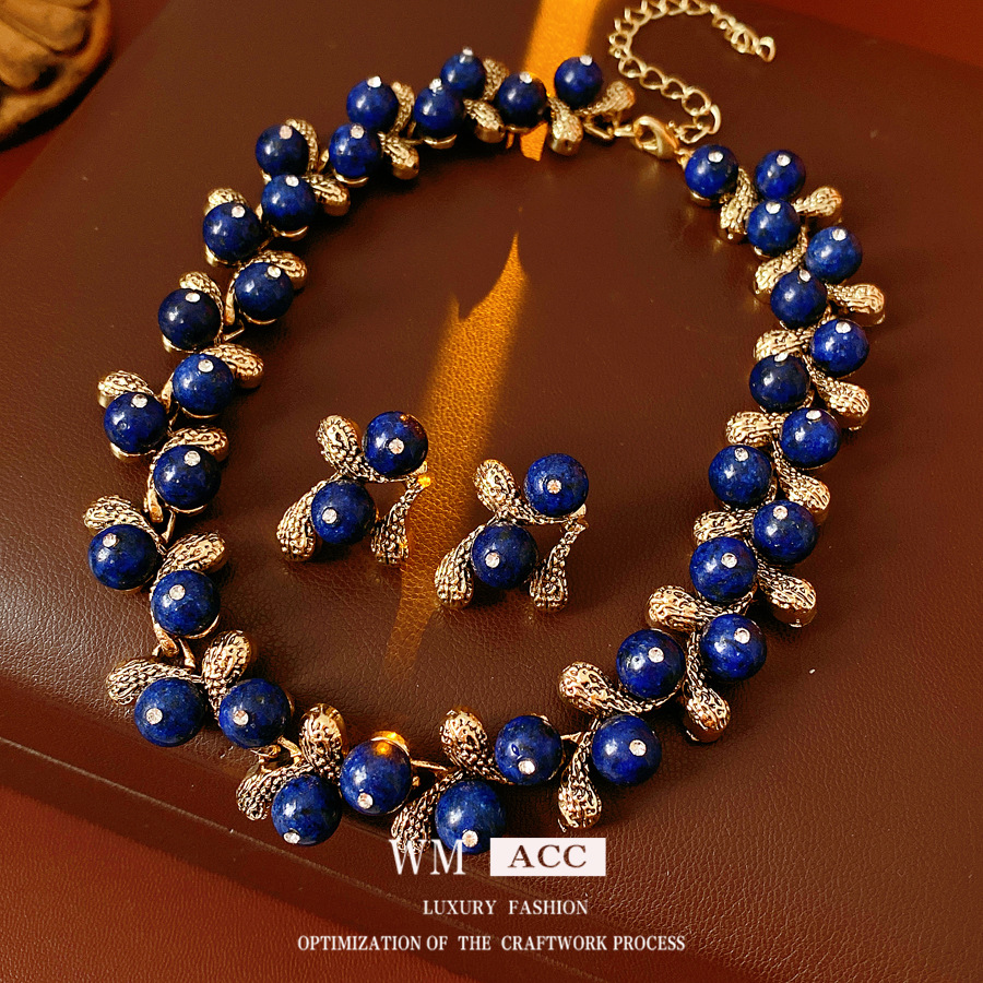 European and American Amazon retro turquoise beaded sweater chain jewelry necklace earrings bracelet jewelry set Wholesale