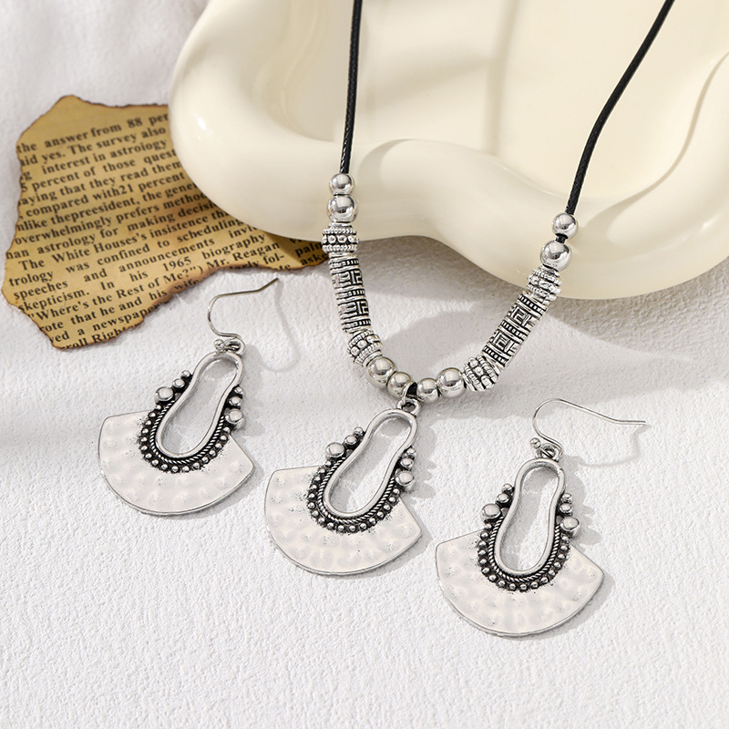Cross-border European and American Bohemian Style Turquoise Necklace Earrings suit Fashion Texturous Earrings Temperament Jewelry