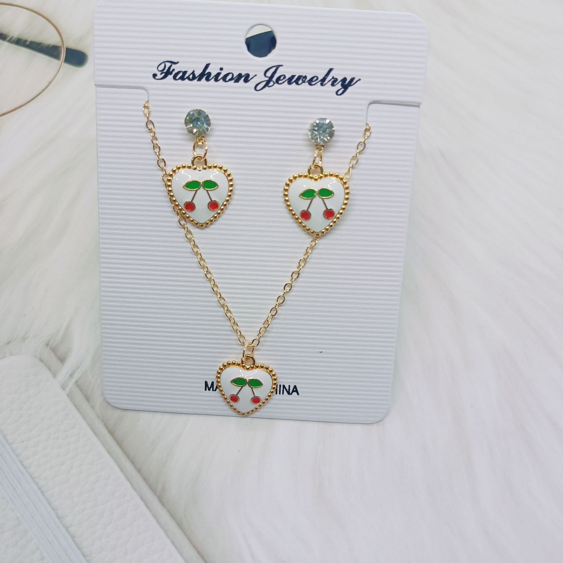 Amazon Cross-Border Best-Selling Oil-Dropping Cherry Necklace, Versatile, High-End and Exquisite Earrings, Necklace and Fruit Set