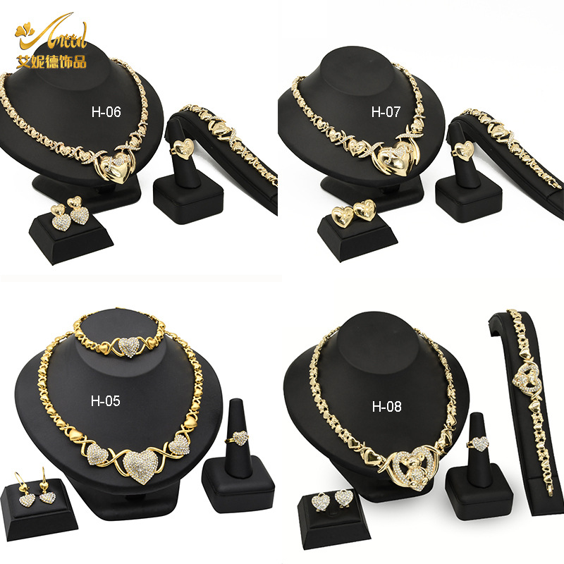 European and American classic XO jewelry suit zinc alloy necklace earrings bracelet ring jewelry four-piece wholesale