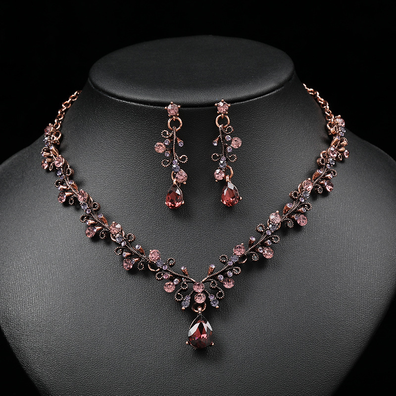 European and American Foreign Trade Jewelry Retro Jewelry Set Gemstone Necklace Clavicle Chain Cross-Border Female Leaf Water Drop Spot Straight Hair