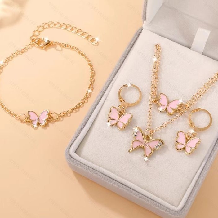 Cross-border New Children's Necklace Creative Pearl Butterfly Girls' Jewelry Bracelet Girls' Oil Dropping Accessories Ring Earrings