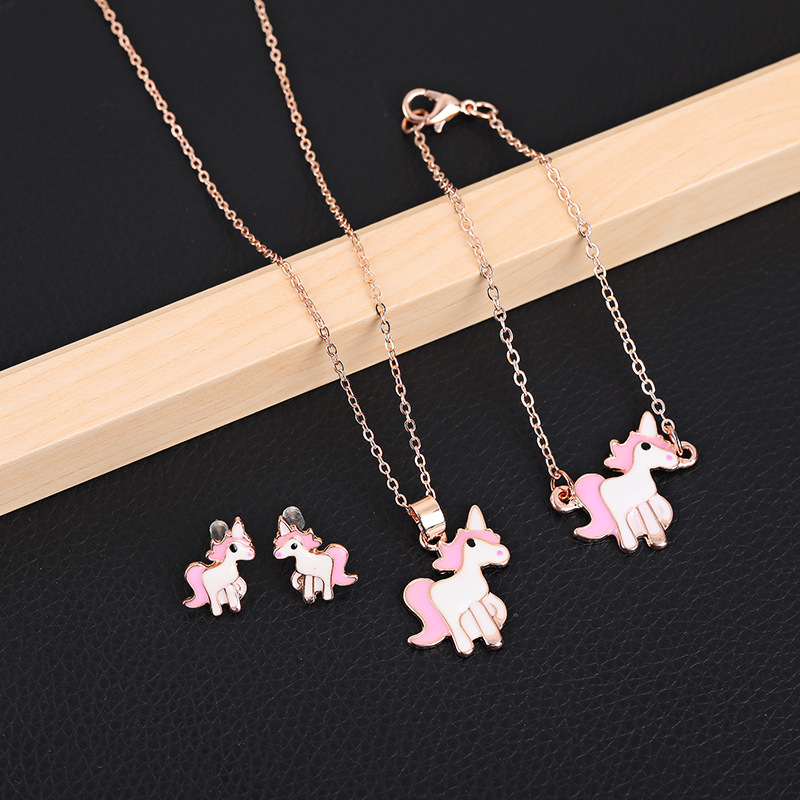 Creative Oil Drop Cartoon Unicorn Earrings Bracelet Necklace Set New Sweet and Cute Jewelry Three-Piece Set