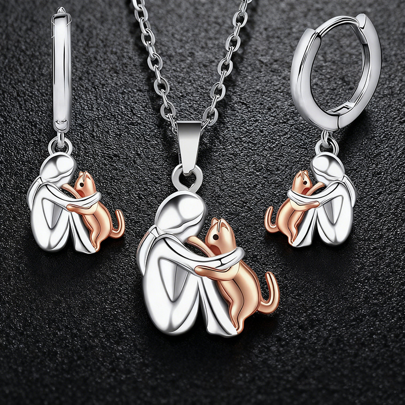 Cross-Border New Style Cartoon Little Girl and Dog Earrings for Women, Niche Versatile Simple High-End Earrings Jewelry Accessories