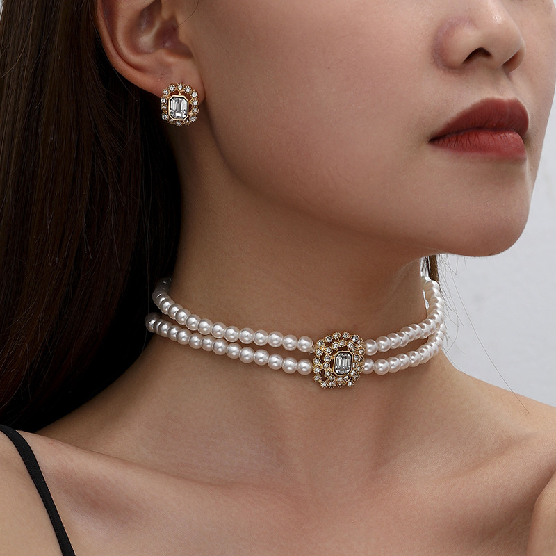 European and American Fashion Retro Elegant Multi-layer Imitation Pearl with Gemstone Women's suit Suitable for Banquet Wear Fashion suit