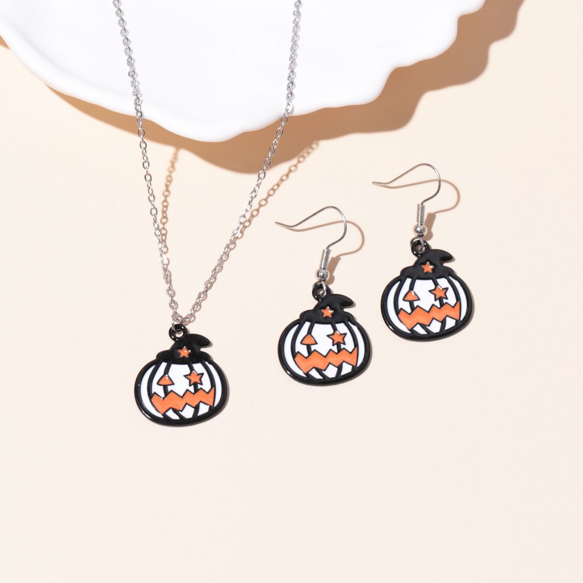 European and American Cross-border New Halloween Death Ghost Bat Pumpkin Skull Earrings Stainless Steel Collarbone Chain Pendant