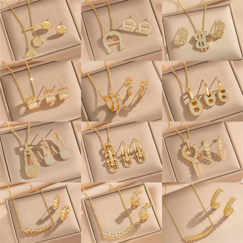 Han Ao Jewelry Factory Fashion Bridal Jewelry Crystal Jewelry - Desert Light Earrings Necklace Two-Piece Set 4156