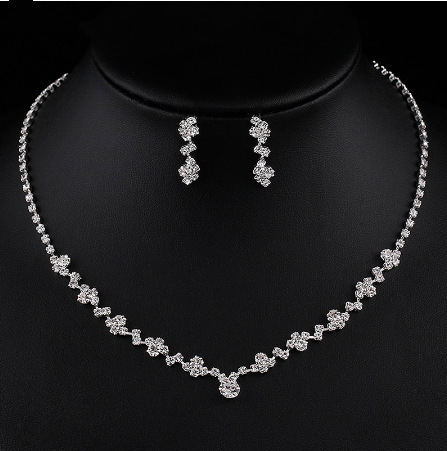 Light Luxury Zircon Necklace Earrings European and American Wedding Rhinestone Jewelry Super Flash Wholesale