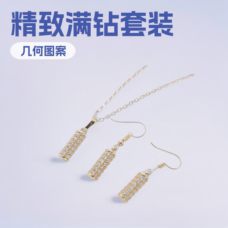 Amazon Hot Selling Jewelry European and American Fashion Copper Micro-inlaid Zircon Exquisite Full Diamond Cylindrical Earrings Necklace Two-piece Set